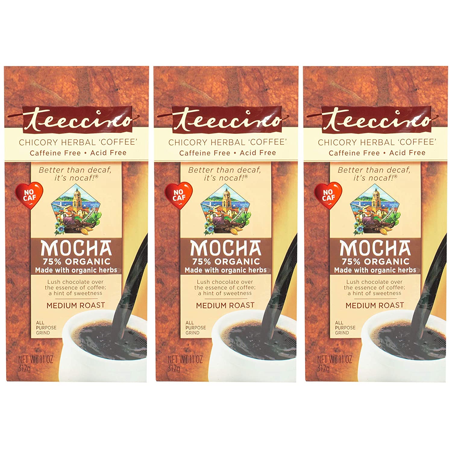 Chicory Coffee Alternative Mocha Herbal Coffee Ground Coffee Substitute Prebiotic Caffeine Free Acid Free Medium Roast 11 Ounce Pack Of 3 Walmart Com Walmart Com