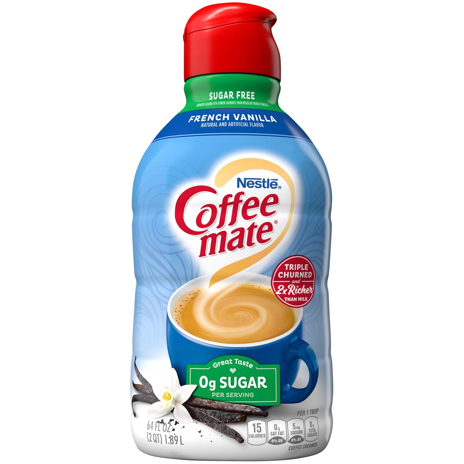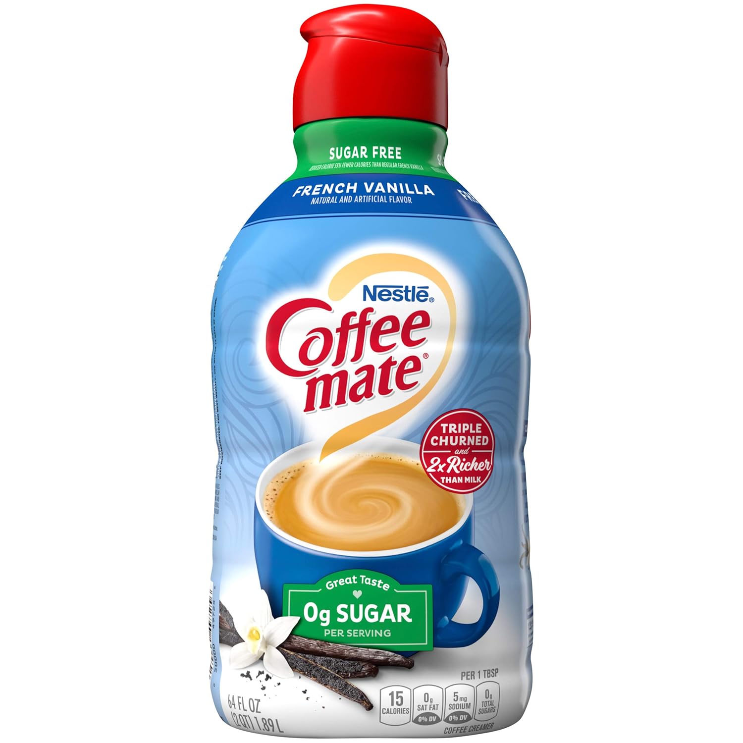 Transform the coffee you like into the coffee you love with coffee mate sugar free french vanilla coffee creamer. Add the tropical flavor of sweet indulgent coconut to your cup for a taste that is lactose-free cholesterol-free and gluten-free. UPC 050000497256 buy Nestle Coffee Mate Liquid French Vanilla Sugar Free Coffee Creamer 64 Fl Oz Plastic Bottle 050000497256 Learn about Coffee-mate UPC lookup find upc.